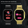 ساعة ذكية بتصميم فاخر ذهبي لامع تجمع بين الأناقة والتقنية العالية. مثالية للرجال والنساء، وتناسب جميع المناسبات الرسمية واليومية.